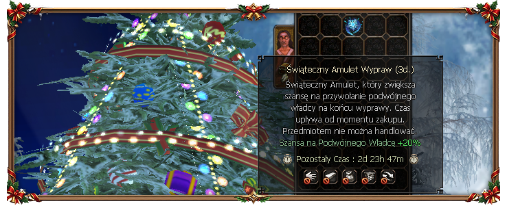 Słynne świąteczne drzewko... Czym byłyby święta bez tej choinki? Choinka pozwala na odebranie misji na Świąteczny Amulet +0.